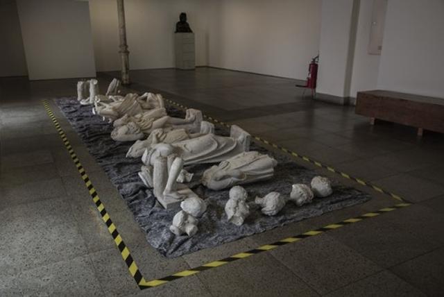 Compostas por fragmentos de monumentos, as instalações reproduzem a situação das peças tal qual foram encontradas pela artista em depósitos públicos, como uma espécie de “ready made” do esquecimento.
